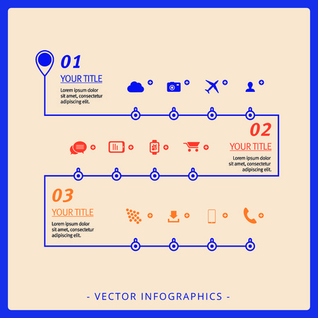 3 つの段階 アイコン タイトルとサンプル テキストをタイムライン図の編集可能なインフォ グラフィック テンプレートのイラスト素材 ベクタ Image